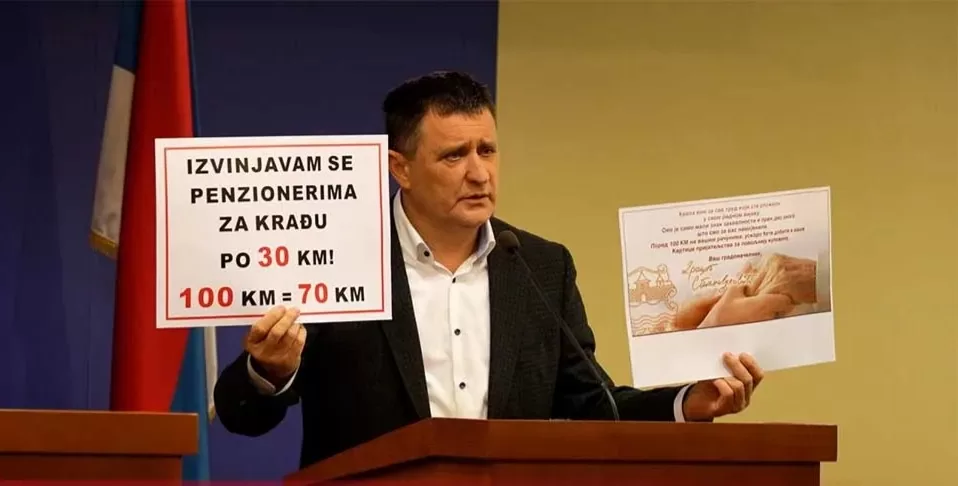 Đajić je napomenuo da 100 KM koje je Stanivković tek sada isplatio penzionerima danas vrijede samo 70 KM.