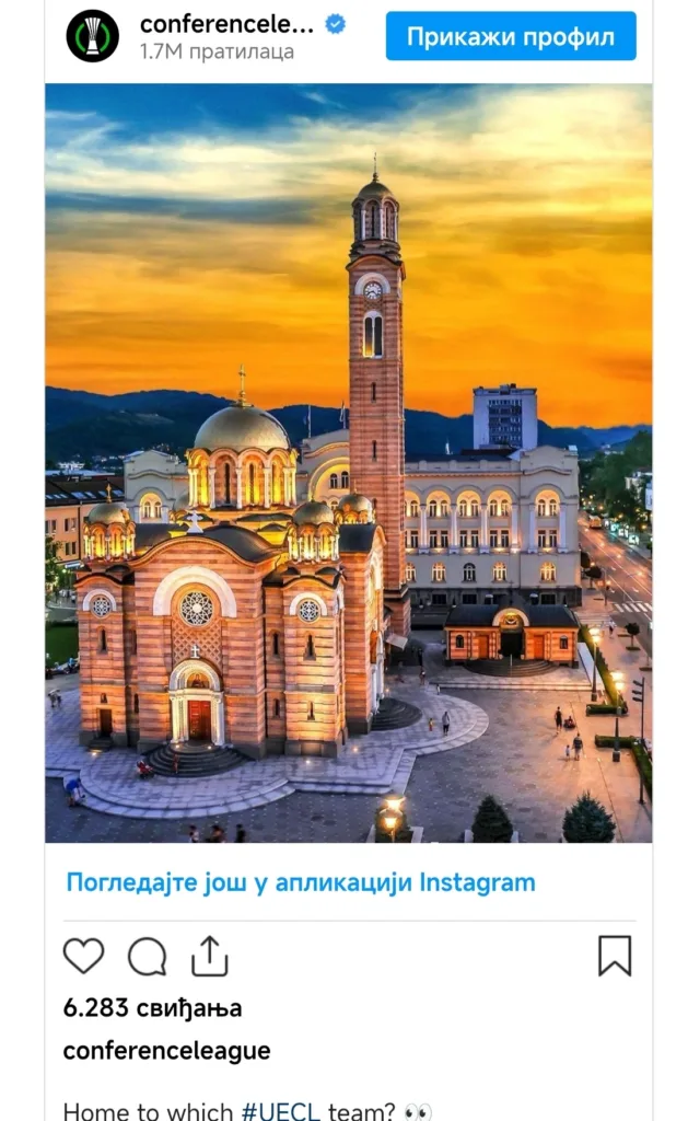 Na zvaničnom Instagram profilu Lige konferencija osvanula je fotografija Banjaluke.