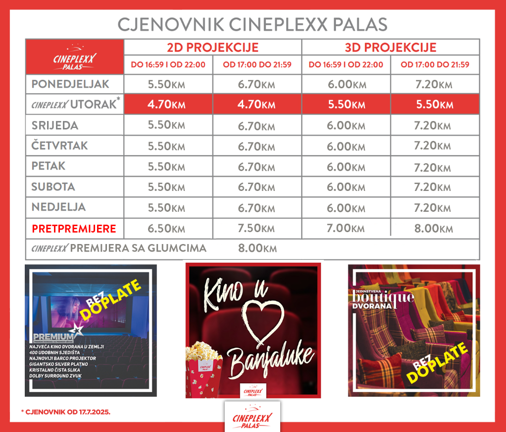 Termini: četvrtak, petak, ponedjeljak, utorak 19:15