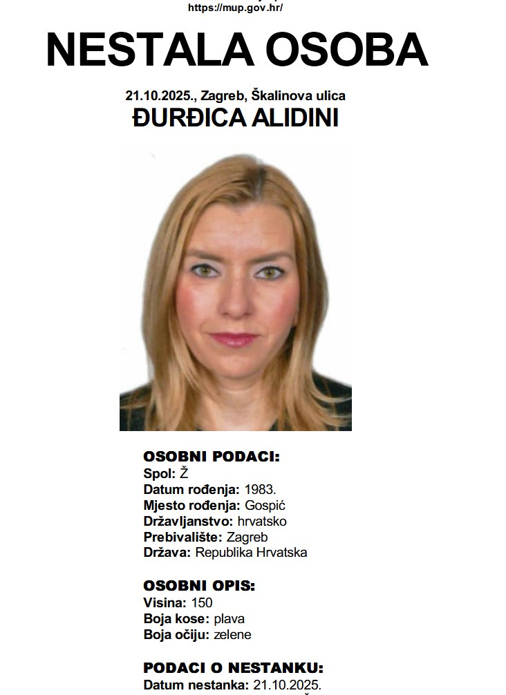 Đurđica Alidini (42) nestala je u utorak kasno poslije podne.