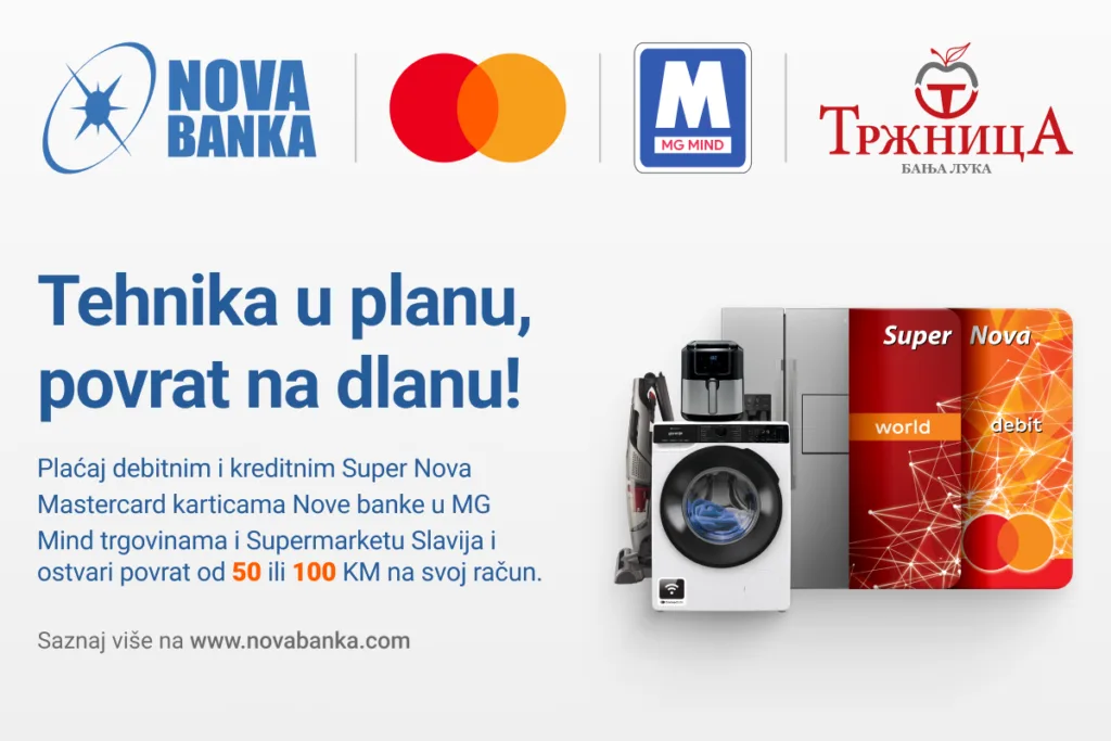 Nova banka, u saradnji s kompanijom Mastercard, pokrenula je promotivnu kampanju pod nazivom „Tehnika u planu, povrat na dlanu“, koja korisnicima Super Nova Mastercard kartica Nove banke donosi mogućnost povrata novca prilikom kupovine tehničke robe.