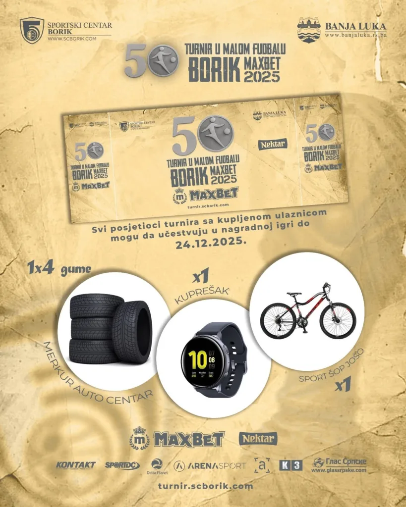 Danas 24. decembra u dvorani “Borik” biće održano 50. finale turnira u malom fudbalu “Borik MaxBet”.