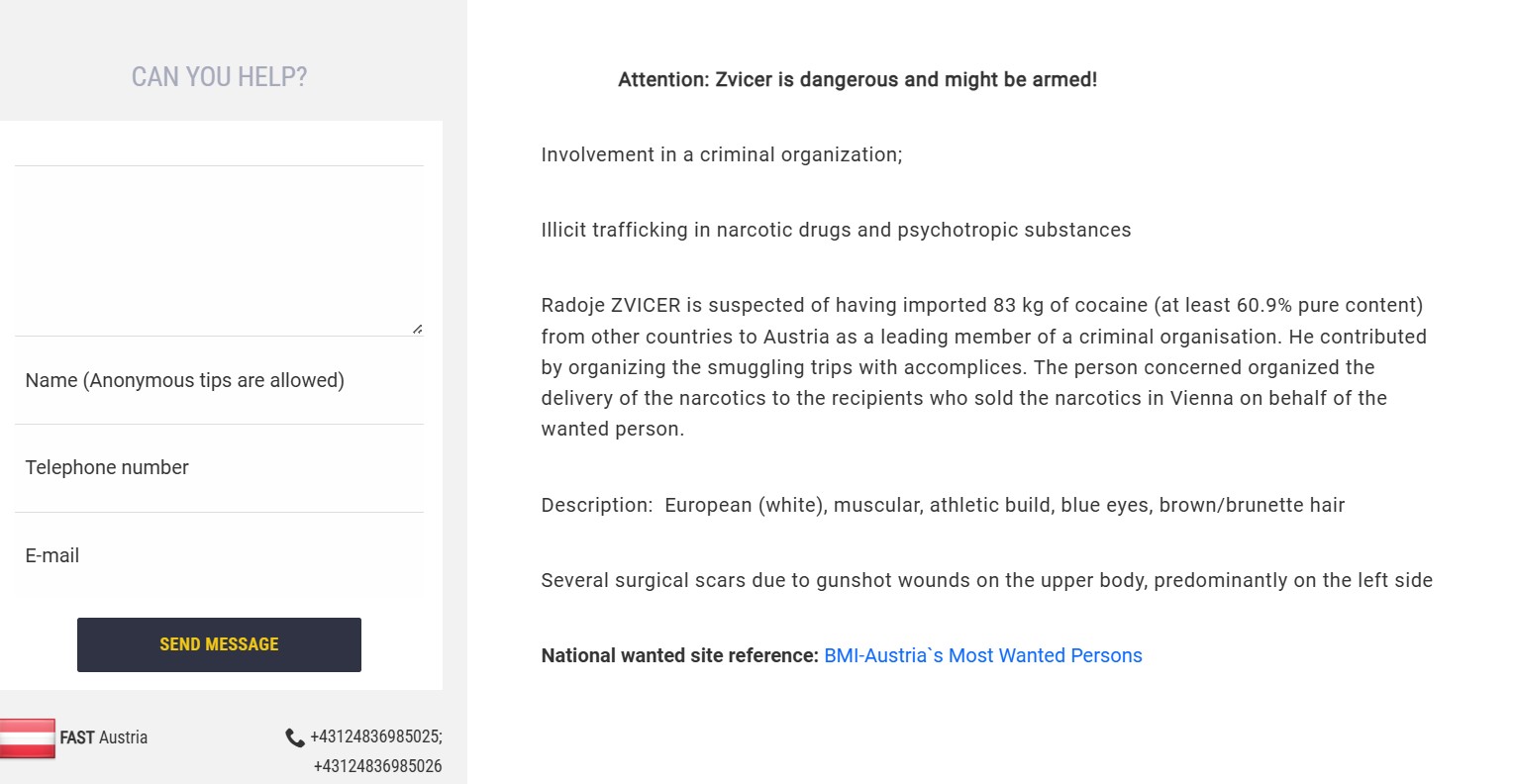 Riječ je, kako navodi Europol, o osobi povezanoj s teškim oblicima organiziranog kriminala, međunarodnom trgovinom drogom.