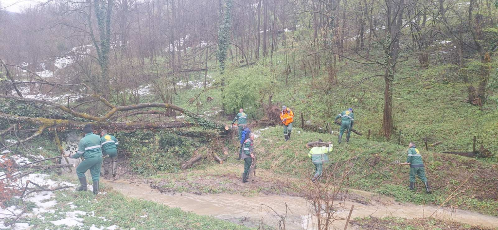 Naime, nakon obilnih padavina i topljenja snijega došlo je do pojave većeg broja palih stabala, što predstavlja potencijalnu opasnost po protok vode i mogućnost izlijevanja.