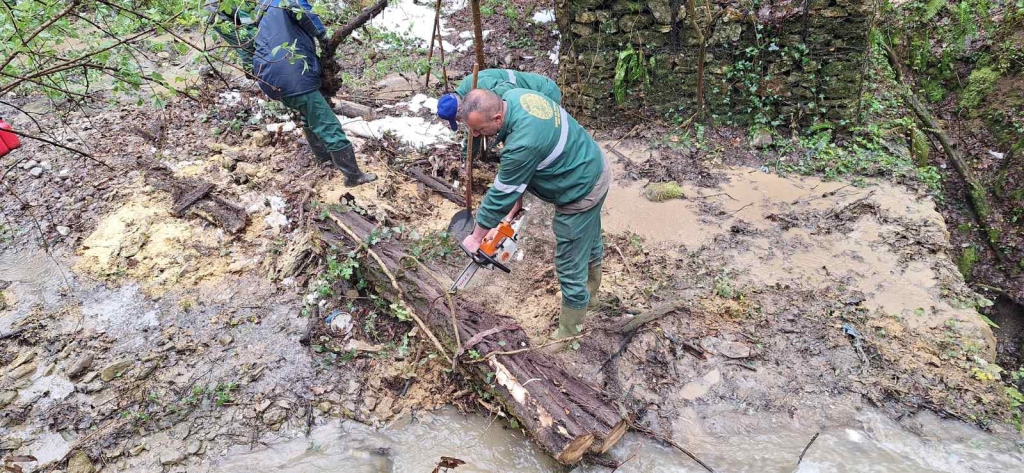 Nadležne službe su na terenu i aktivno rade na uklanjanju palih stabala iz potoka i rijeka, a kako bi se obezbijedio nesmetan protok vodotoka i smanjio rizik od poplava.